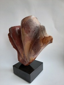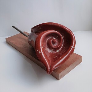 2020Deze Cala bloem, uitgevoerd in rode galastone met groene vlekjes. Een mooie spiraalvorm.